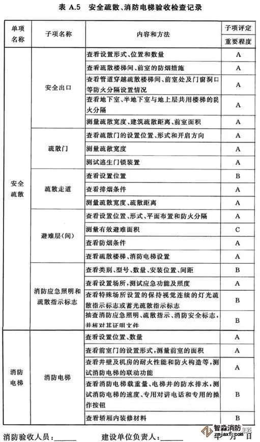 6.2.1子項按其影響消防安全的重要程度分為A(關(guān)鍵項目)、B(主要項目)、C(一般項目)三類,分類標準如下: