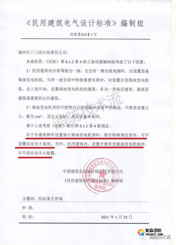 問(wèn)題1:是按照《建筑設(shè)計(jì)防火規(guī)范》根據(jù)柴油發(fā)電機(jī)組的大小、數(shù)量、用途等實(shí)際情況確定柴油發(fā)電機(jī)房的滅火設(shè)施,還是按《民用建筑電氣設(shè)計(jì)標(biāo)準(zhǔn)》不分容量、建筑規(guī)模等情況,都應(yīng)設(shè)置自動(dòng)滅火設(shè)施。