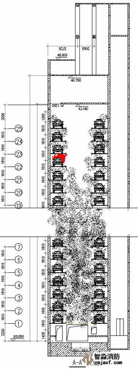 2.1 立體停車庫(kù)設(shè)置二氧化碳氣體滅火系統(tǒng)在《汽車庫(kù)、修車庫(kù)、停車場(chǎng)設(shè)計(jì)防火規(guī)范》中已有相應(yīng)規(guī)定,由于立體停車庫(kù)是一個(gè)獨(dú)立的大空間,采用全淹沒單元獨(dú)立方式滅火是最為理想的,設(shè)置高壓系統(tǒng)而不設(shè)置低壓系統(tǒng)原因有二:其一、低壓系統(tǒng)壓力太小,要爬升到40多米高度再往下噴放藥劑顯然壓力不足;其二、低壓系統(tǒng)的大型儲(chǔ)罐只能放在一樓或二樓,這樣有利于日后補(bǔ)充藥劑,若為保證壓力而把儲(chǔ)罐放的太高,二氧化碳槽車根本無(wú)法靠近,充裝藥劑就很難實(shí)現(xiàn)。
