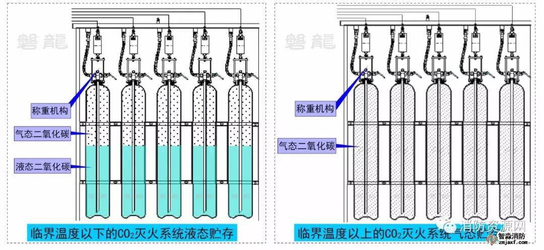 示例:二氧化碳的臨界溫度31.26,20℃時(shí)的飽和蒸氣壓5.7MPa,屬于自壓式氣體滅火系統(tǒng)。