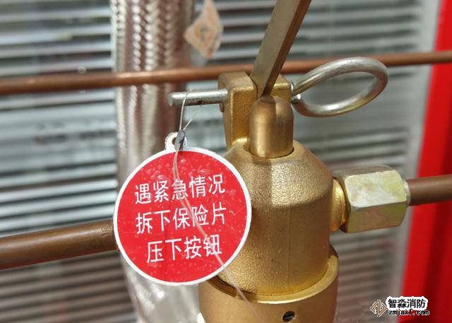 滅火劑瓶組保險(xiǎn)銷位于滅火劑瓶組的瓶頭閥上,正常情況下,此保險(xiǎn)銷不能解除。只有當(dāng)發(fā)生火災(zāi)時(shí),氣體滅火控制系統(tǒng)失效,而且啟動(dòng)瓶組也失效的情況下,才能解除這個(gè)保險(xiǎn)銷,以機(jī)械應(yīng)急方式啟動(dòng)滅火劑瓶組,實(shí)施滅火。